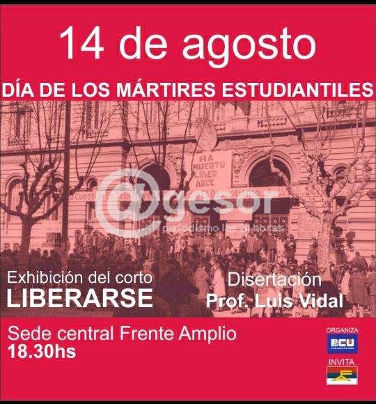 Este  domingo en la sede del Frente Amplio Soriano, el prof. Luis Vidal disertará sobre los Mártires estudiantiles.  Una actividad organizada por el Frente Amplio y el Partido Comunista en un nuevo aniversario del asesinato de Líber Arce.  Además se  exhibirá el corto “Liberarse”.