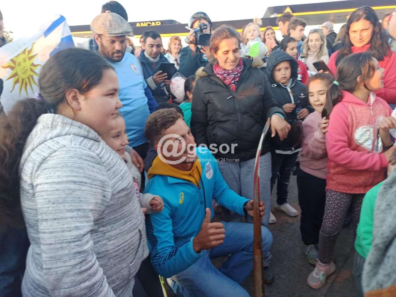 Luego llegó hasta la explanada de una de las estaciones de servicio donde lo esperaba mucha gente de diferentes edades para abrazarlo, saludarlo y agradecerle, además de tradicional foto y él siempre respondiendo con alegría y calidez, mientras sus compañeros de delegación lo aguardaban para iniciar la caravana.
