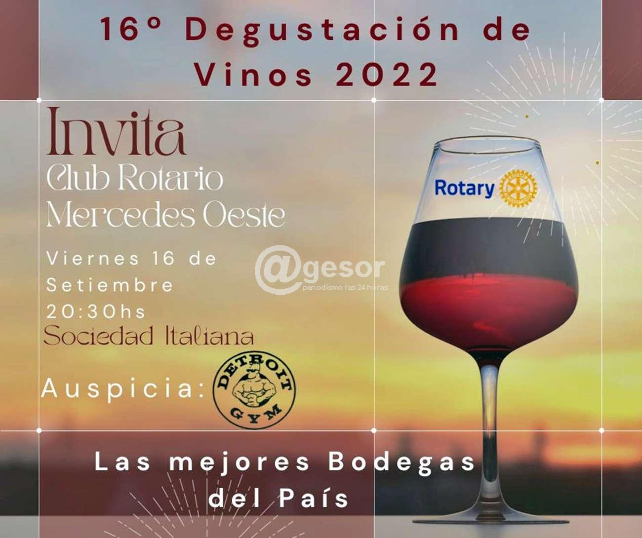 El Club Rotario Mercedes Oeste está invitando a la 16ª Degustación de Vinos a realizarse el viernes 16 de setiembre en la sede de la Sociedad Italiana de Mercedes, a partir de las 20.30 horas, con la presencia de las mejores bodegas del país.