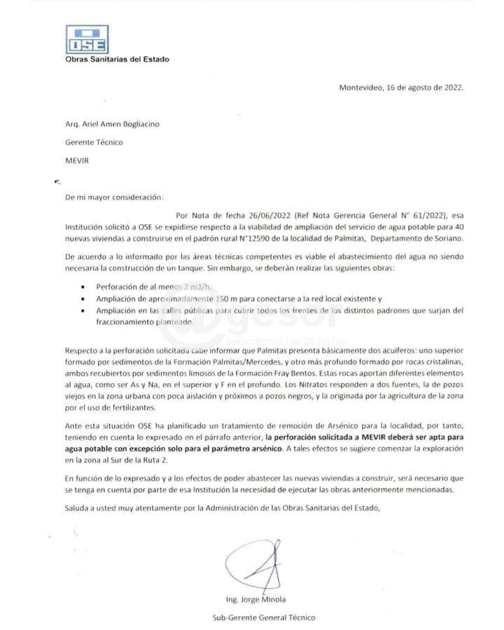 En dicha reunión OSE quedó con un compromiso de realizar dichas obras.