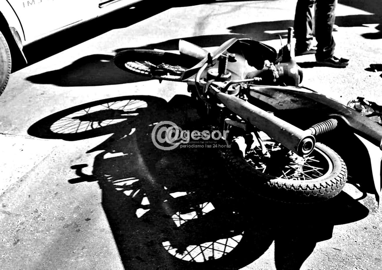 El mismo se desplazaba en moto Yumbo Max, habiendo colisionado con automóvil Volkswagen conducido por femenina mayor de edad.