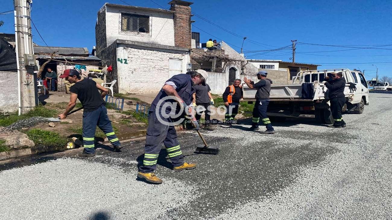 Ya se ha procedido a aplicar el doble riego de asfalto con gravilla en las primeras calles que se intervinieron, como el caso de Don Bosco, desde Aparicio Saravia hasta Pozzolo.