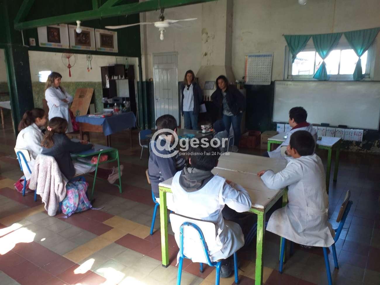 Como es habitual, en el comienzo los odontólogos brindaron la charla de carácter preventiva y realizaron la revisión a los 8 alumnos que asisten al centro educativo a los efectos de definir los tratamientos a seguir.