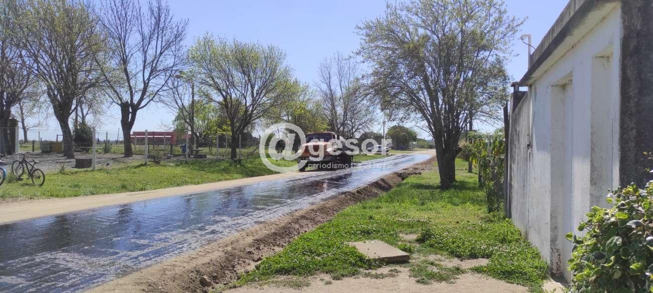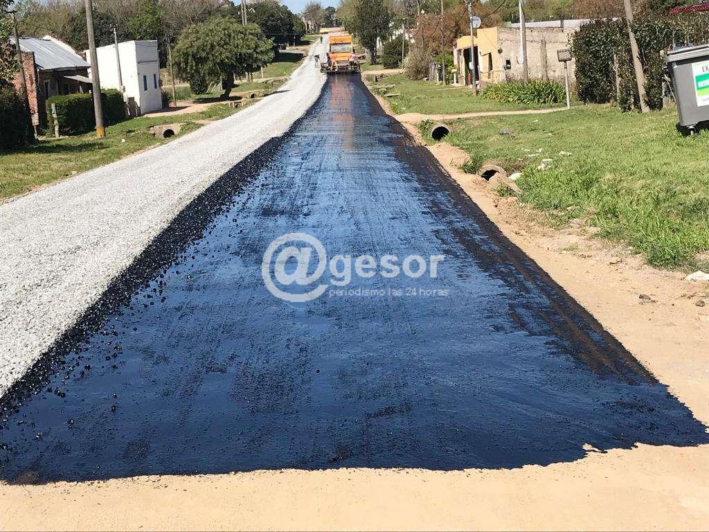 Recientemente se realizó el riego de imprimación y la aplicación de bitúmen y gravilla en unos 300 m. en tramos de las calles Tabaré y San Salvador.