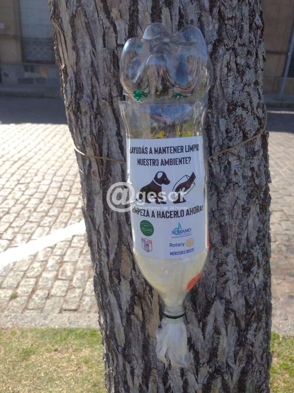La novedad puede apreciarse en la plaza Artigas, donde con estos elementos se contribuye a la limpieza de la ciudad y también a concientizar sobre la tenencia responsable de mascotas.