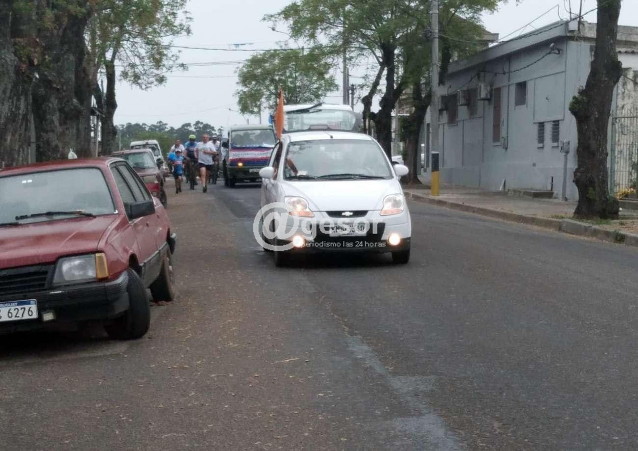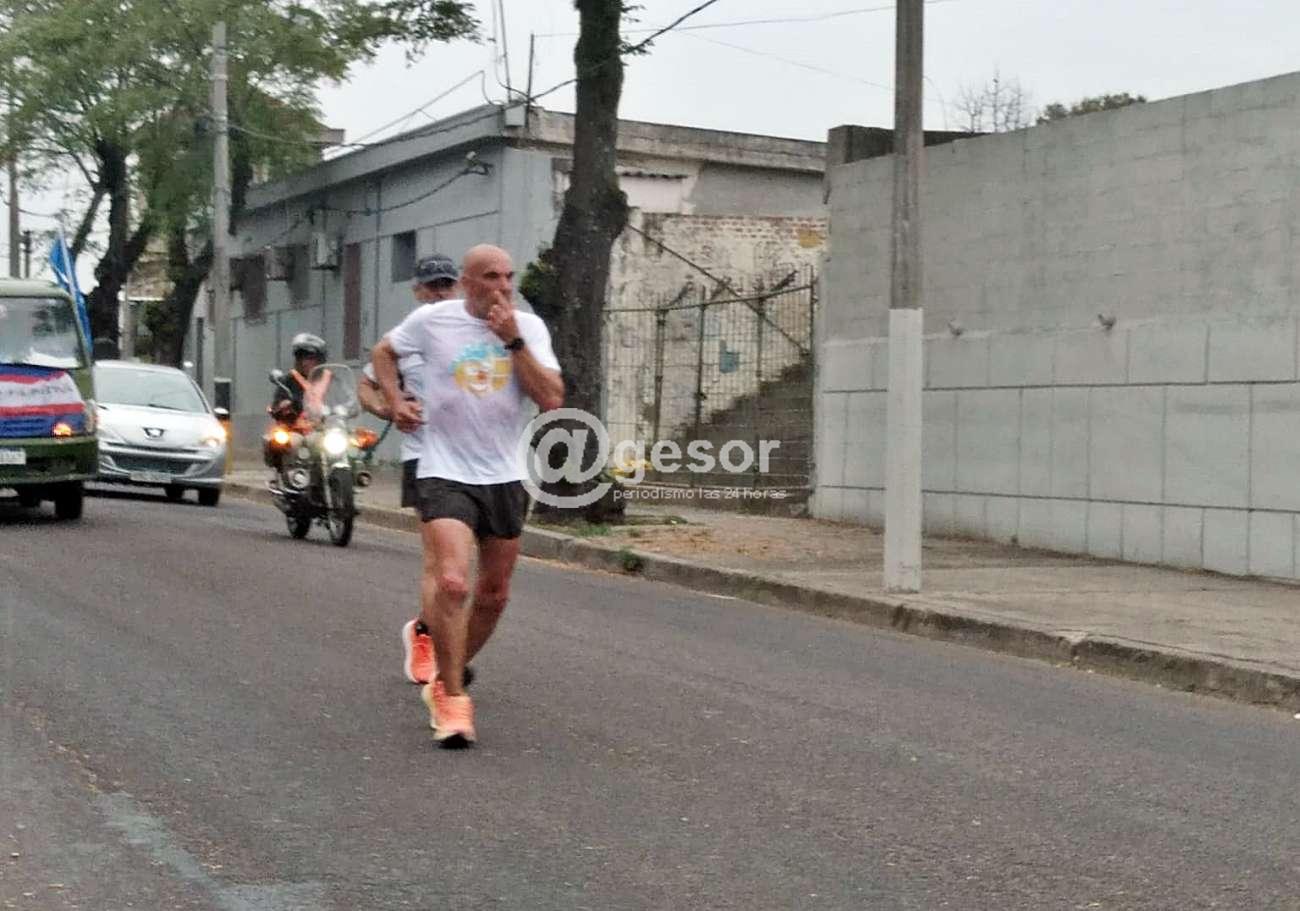 Registramos el pasaje de Rodney Cuestas por avda. Fregeiro en los últimos metros dentro de la ciudad de Mercedes de la Ultramaratón que durante tres días realizó en apoyo de la asociación Pequeños Valientes del Trastorno del Espectro Autista (PVTEA)
