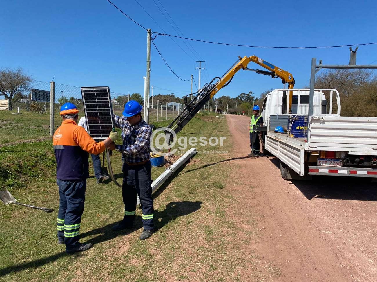 Allí se realizó la instalación de 6 luminarias LED autónomas (alimentadas con paneles solares individuales) en un tramo del camino que va desde escuela Nº 110 hacia el este y su desvío hasta unirse con ruta 14 a la altura del km. 2, extendiendo la iluminación desde el sector donde ya se cuenta con luminarias cableadas.