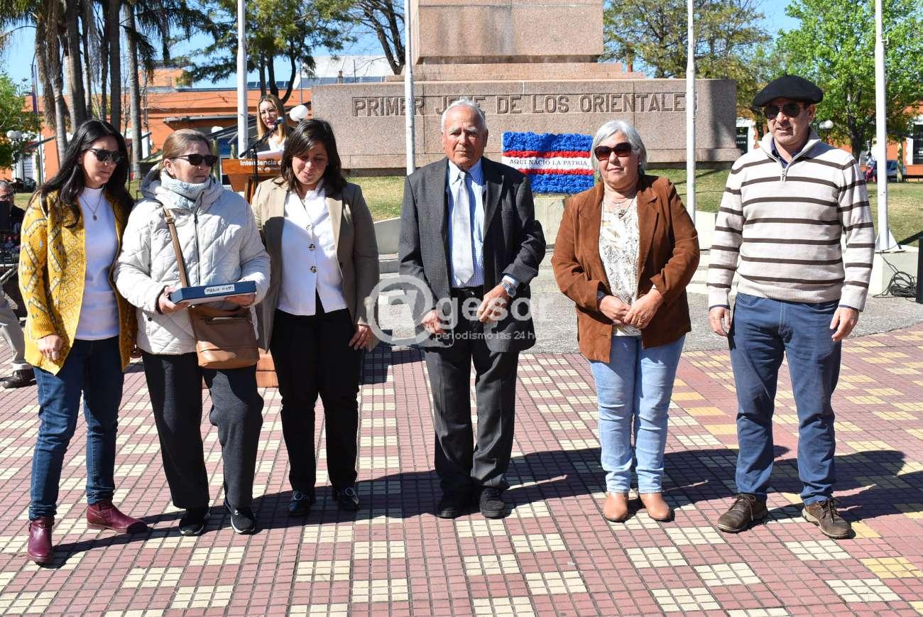 La ceremonia organizada por la Asociación Patriótica de Soriano, lugar en la plaza “Artigas” de Mercedes, donde además de lo protocolar se incluyó el homenaje en memoria a personas fallecidas recientemente y que han estado muy vinculadas a los actos patrióticos.