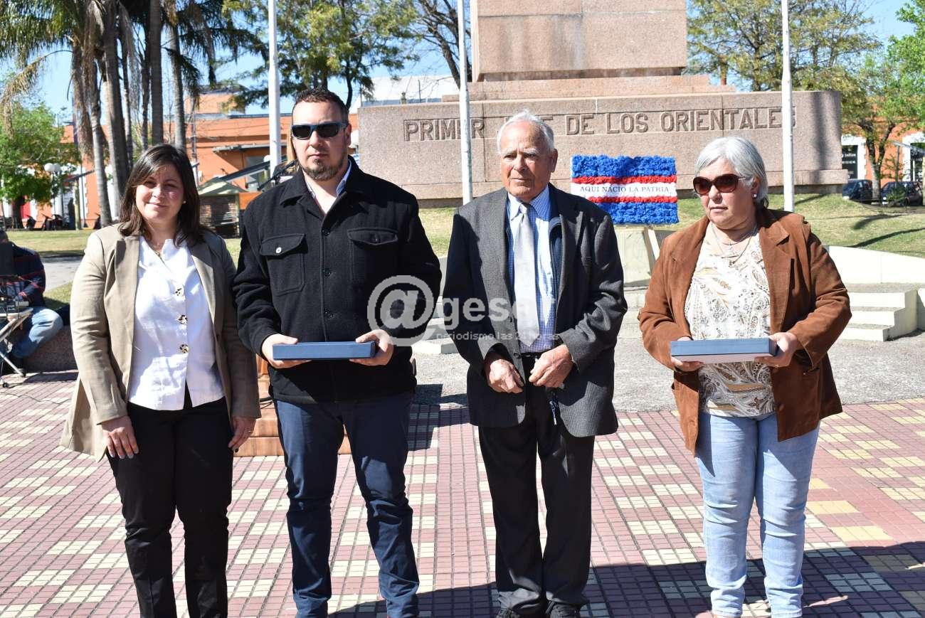 Tal es así que se entregaron plaquetas a las familias de Julio De Biasse y Milton Campos, directores de la orquesta "Mercedes" y del Conservatorio Municipal de Música, respectivamente; y de Mario Humberto Viotti, referente de la Unión de Instituciones Tradicionalistas de Soriano.
