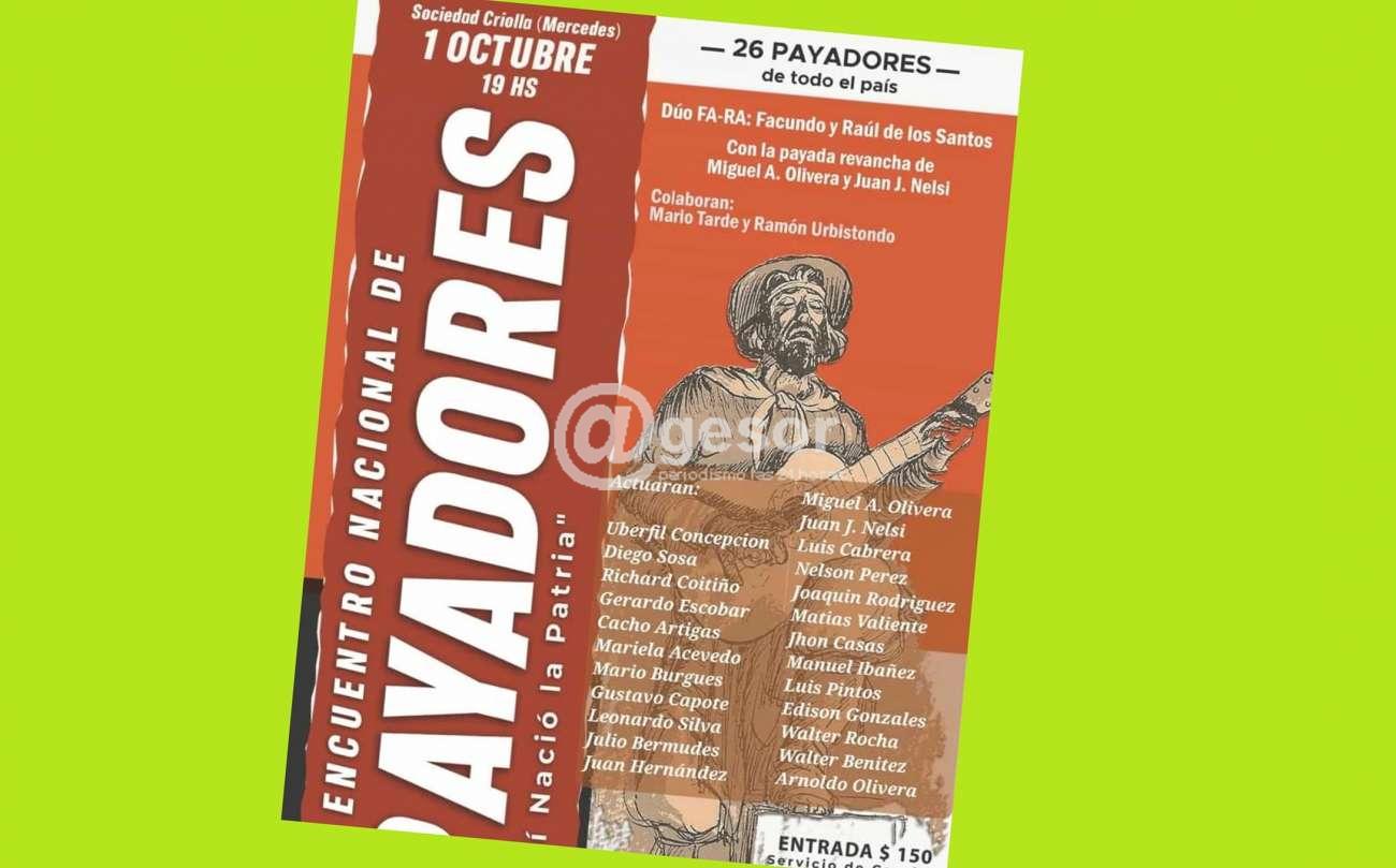 Este 1 de octubre se realiza en Mercedes el 2do. Encuentro Nacional de Payadores. Participarán en este evento que se realizará en la Sociedad Criolla Por la Tradición, 26 payadores de todo el país, dando continuidad a este Encuentro que surgió el año pasado y que busca posicionarse en el calendario de eventos del departamento. La organización corresponde a la Dirección de Cultura de la Intendencia de Soriano con la colaboración de Mario Tarde y Ramón Urbistondo.