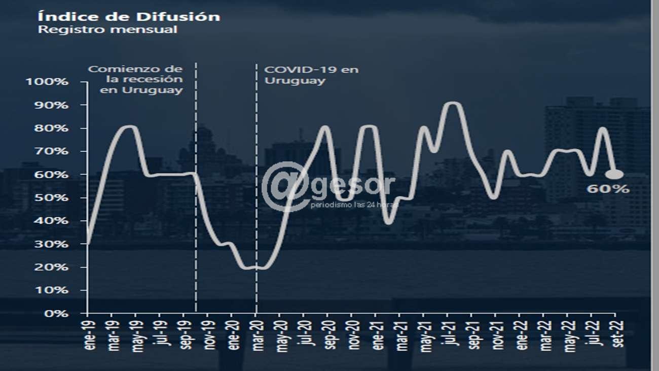 El Índice de Difusión, durante 2021, fue 80% en enero, 40% en febrero, 50% en marzo y abril, 80% en mayo, 70% en junio, 90% en julio y en agosto, 70% en setiembre, 60% en octubre, 50% en noviembre y 70% en diciembre. En 2022 fue de 60% en enero, febrero, marzo, 70% en abril, mayo y junio, 60% en julio, 80% en agosto y 60% en setiembre.