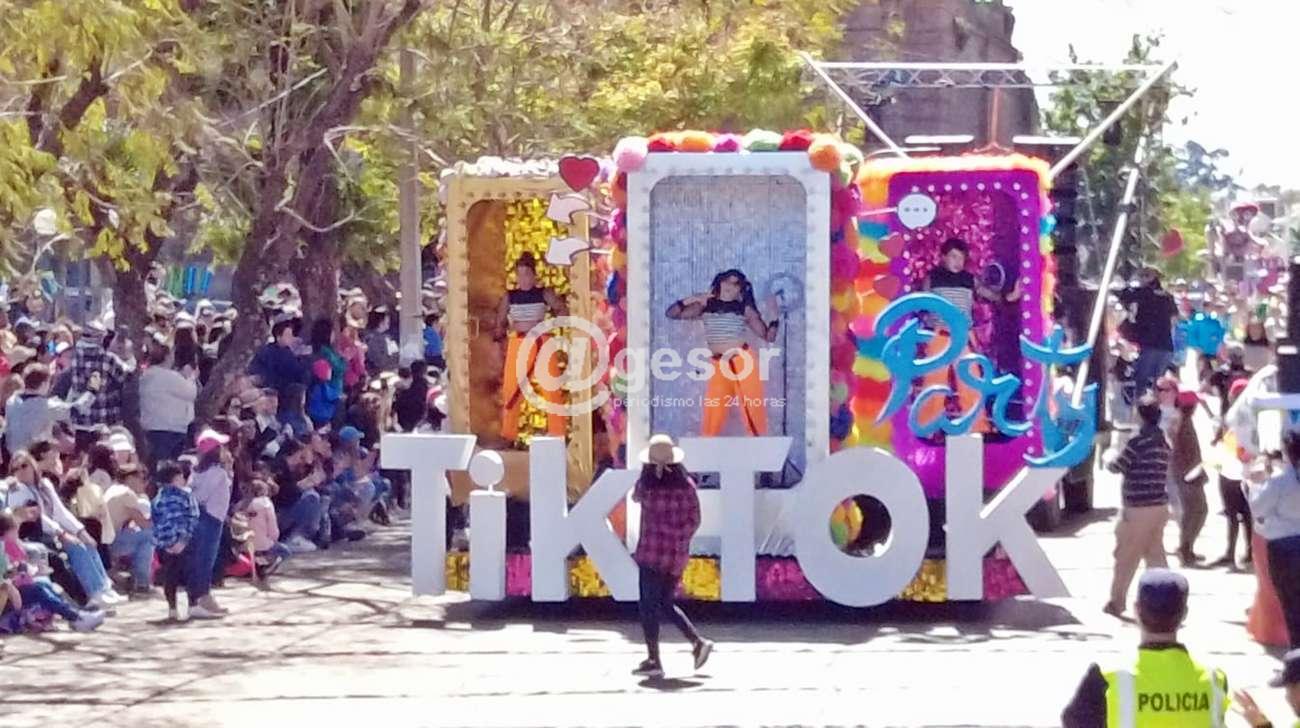 El primer carro en hacer su pasaje ante la concurrencia que en gran número se apostó durante el recorrido en el marco de la edición 60ª de la Fiesta Nacional de la Primavera fue el de los Primeros Unidos del Liceo Nº 2 ¨Juan Bautista Herrero¨ denominado ¨Tik Tok Party¨ con sus princesas aspirantes a Pimpollo Angie Correa, Belén Oehler, Melina Ortega, Magalí Otarola, Camila Torres, Luisana Pérez, Emilia Zucaret.