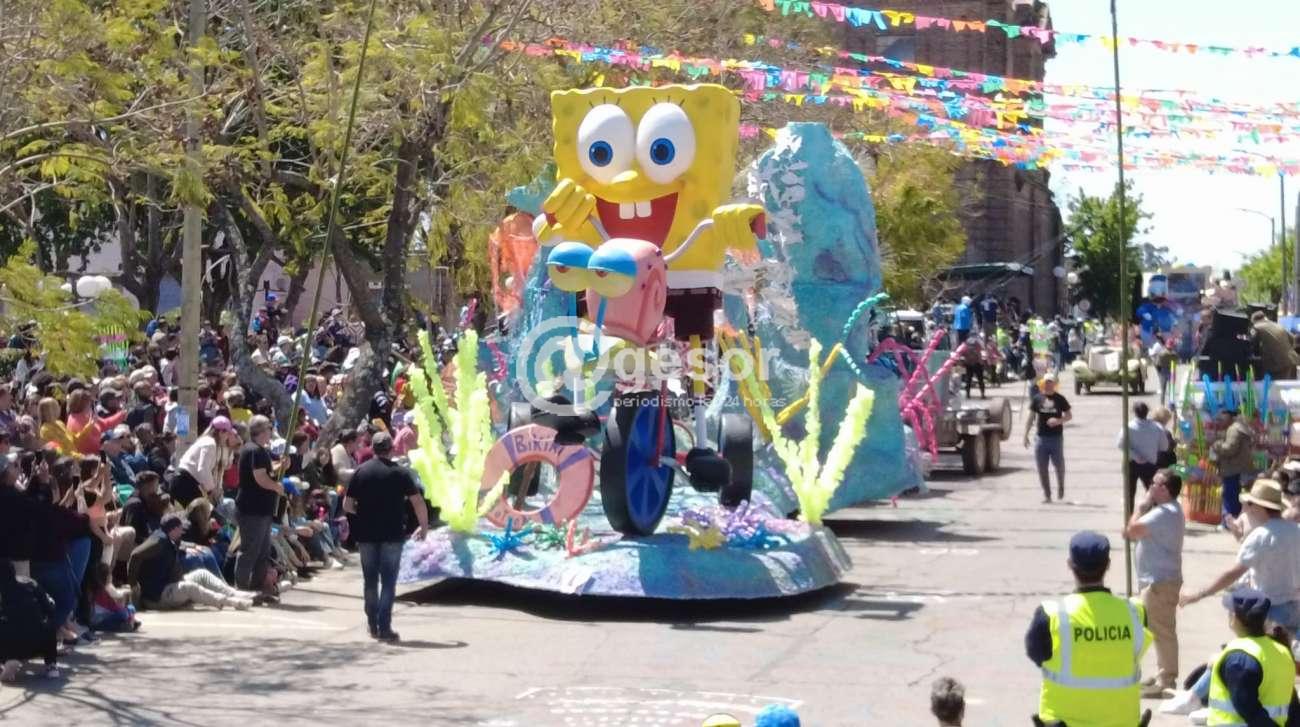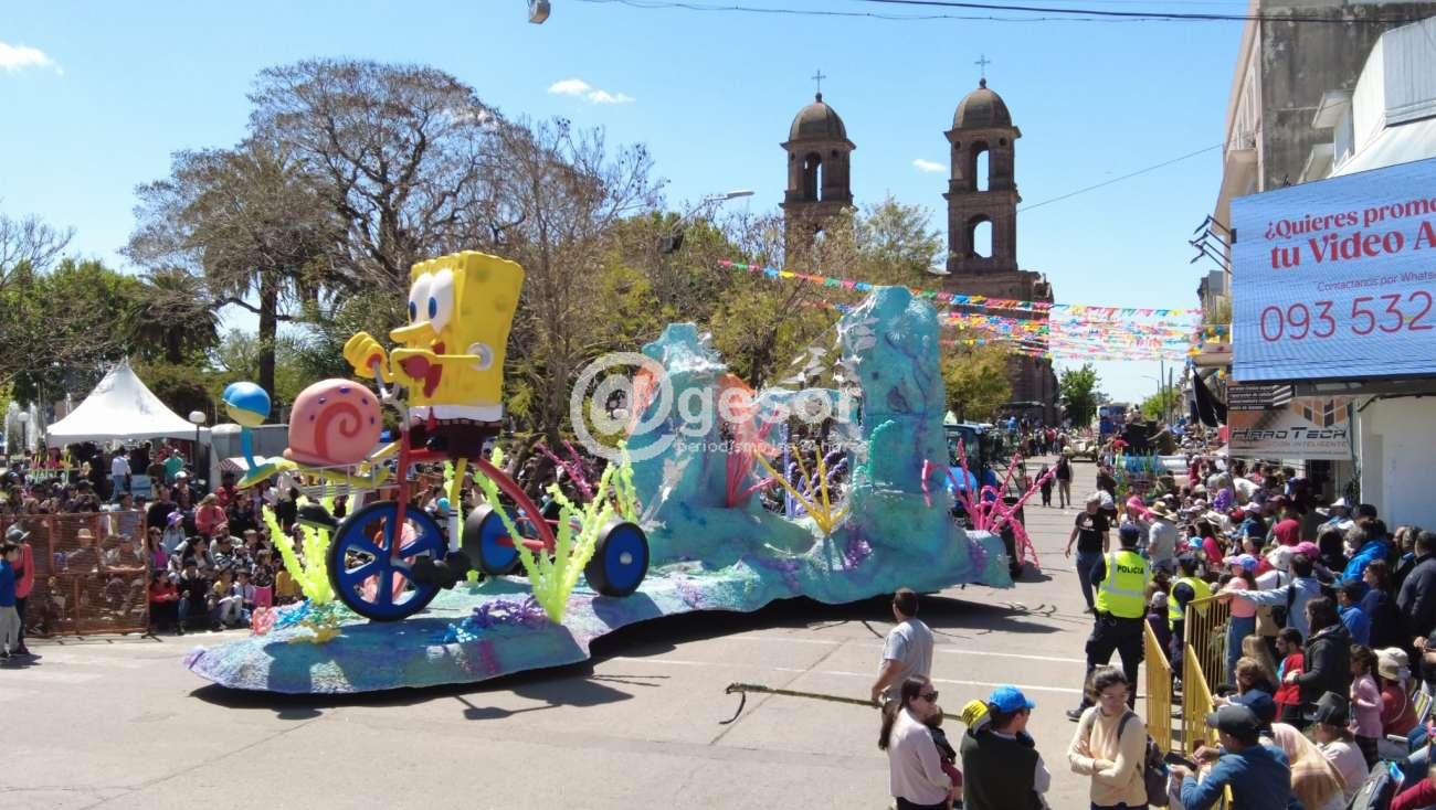 La carroza Nº 4 que hizo su pasaje frente al palco de las autoridades y del Jurado de la 60ª edición de la Fiesta Nacional de la Primavera de Dolores, fue "Samba Bob", de los Segundos Unidos Liceo N°1 del Liceo ¨Dr. Roberto Taruselli¨, cuyas Princesas aspirantes a Pimpollo son Agustina Sánchez y Zarah Velázquez.