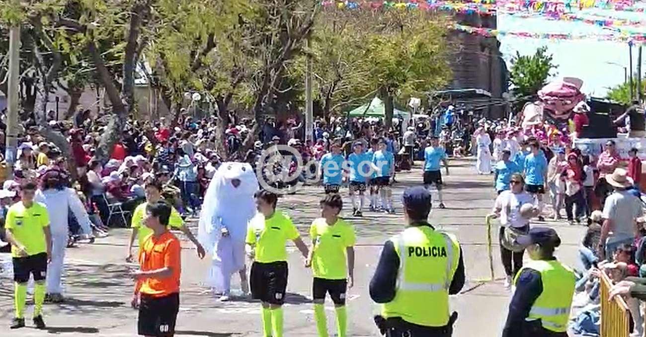 También pueden verse a los árbitros, a los jugadores de la Selección, a los turistas y a pobladores de esa zona con sus trajes típicos.