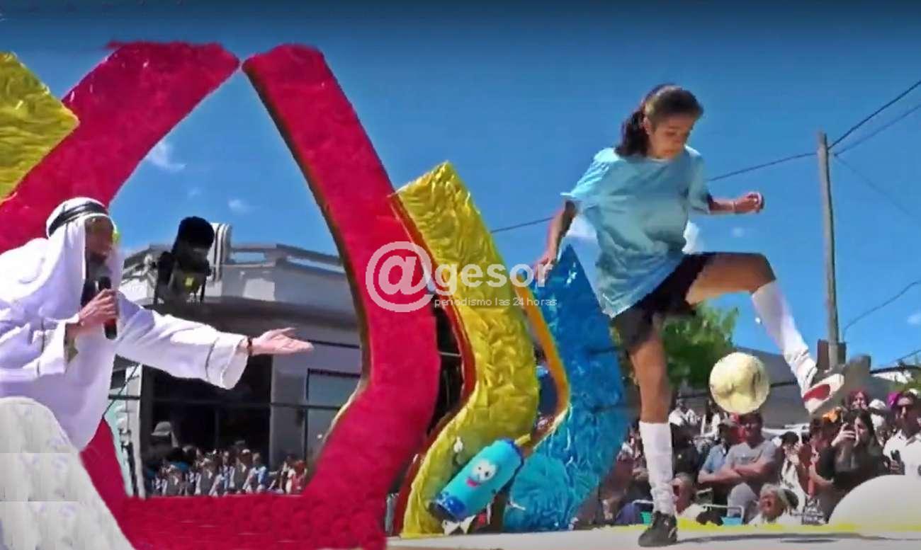 1º) Carroza Nº 6 "Rumbo a Qatar" de los Terceros Unidos del Liceo N° 2 "Juan Bautista Herrero", que presentó como sus Princesas aspirantes a Reina a Sol Cairús y Evelyn Mediza, mostró un trabajo ambientado en el Mundial de Fútbol de Qatar 2022.