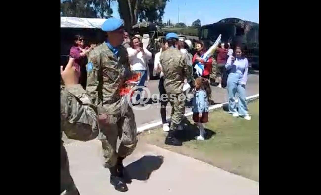 En la mañana de este lunes se vivieron momentos de emoción cuando siete efectivos del Batallón "Asencio" de Infantería Nº 5 de Mercedes que regresaban de misión de paz en Altos del Golán se reencontraron con sus familiares.