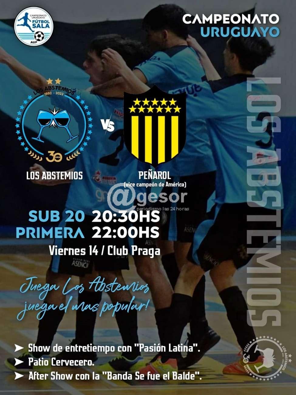 Este viernes 14 el gimnasio "Alberto Della Santa" se viste de fiesta para lo que será el partido del año por el Campeonato Uruguayo de Fútbol Sala, con la presencia en Mercedes luego de muchos años sin venir, del reciente Vicecampeón de la Libertadores de América, Peñarol de Montevideo, para enfrentarse a nuestro multicampón Los Abstemios con el apoyo de toda una ciudad!!!