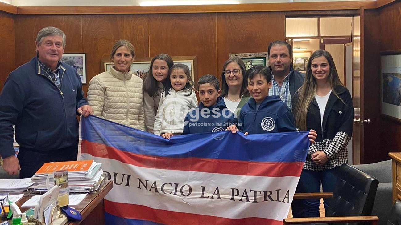 El intendente Guillermo Besozzi hizo entrega de una bandera de Soriano a una delegación de chicos de Mercedes que viajan a Brasil a participar de un torneo internacional de Prueba de Riendas.