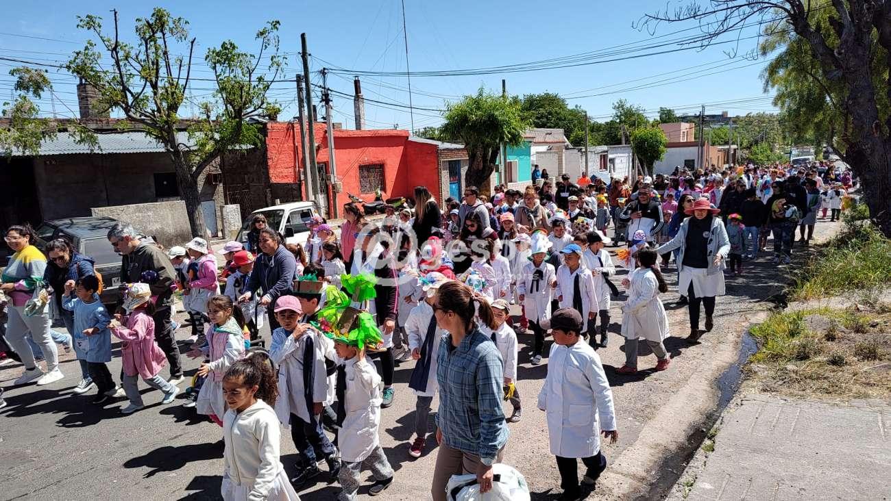 Se hizo un desfile hasta la plaza de Deportes al tiempo que se realizó un puerta a puerta invitando a los vecinos del barrio a sumarse al nuevo sistema de gestión de del programa ECOFERTIL.