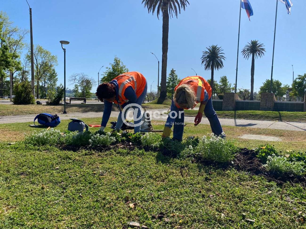 Con la llegada de la primavera, estas acciones mejoran la imagen de la costanera y le da un toque colorido característico a una de las zonas mas concurridas de la Coqueta del Hum.
