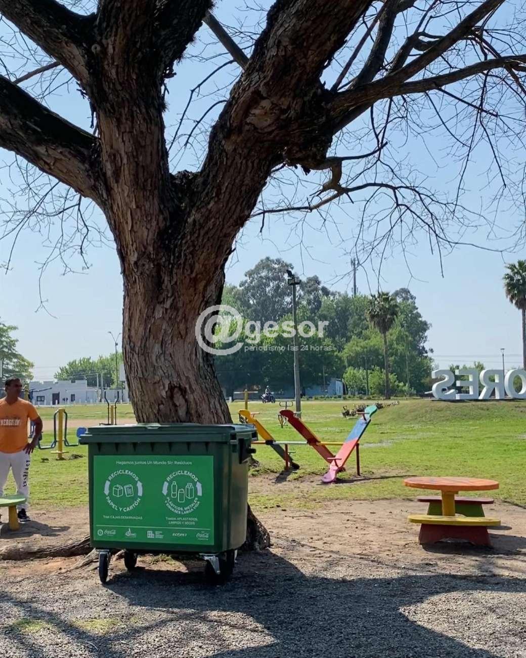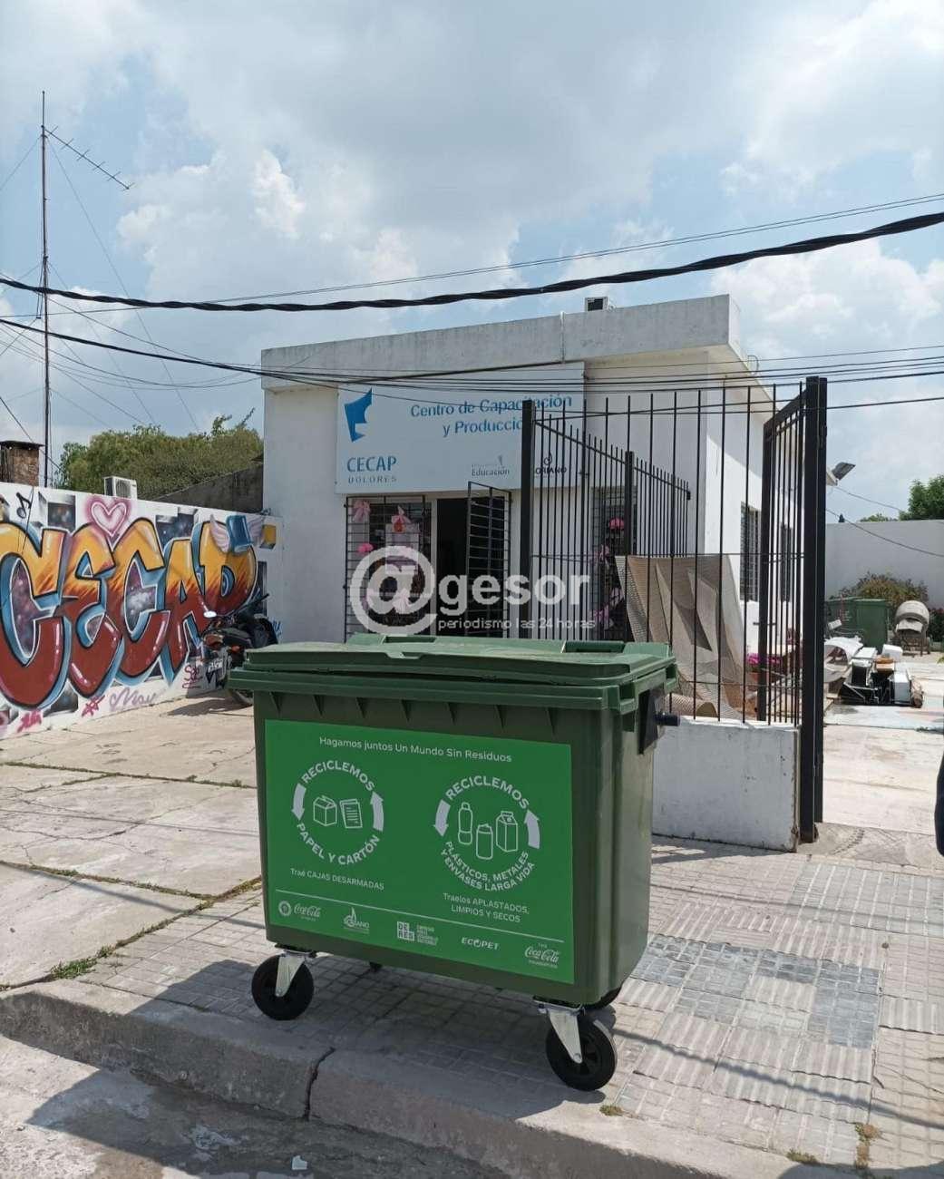 Estudiantes de CECAP junto al Municipio de Dolores colocaron contenedores de 660 litros en varios locales y puntos de la ciudad