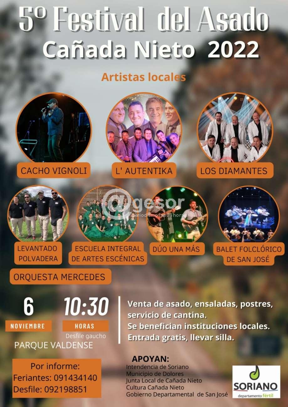 Cañada Nieto será sede del 5º Festival del Asado el próximo 6 y de noviembre. Un evento que tendrá una serie de espectáculos musicales de artistas locales.