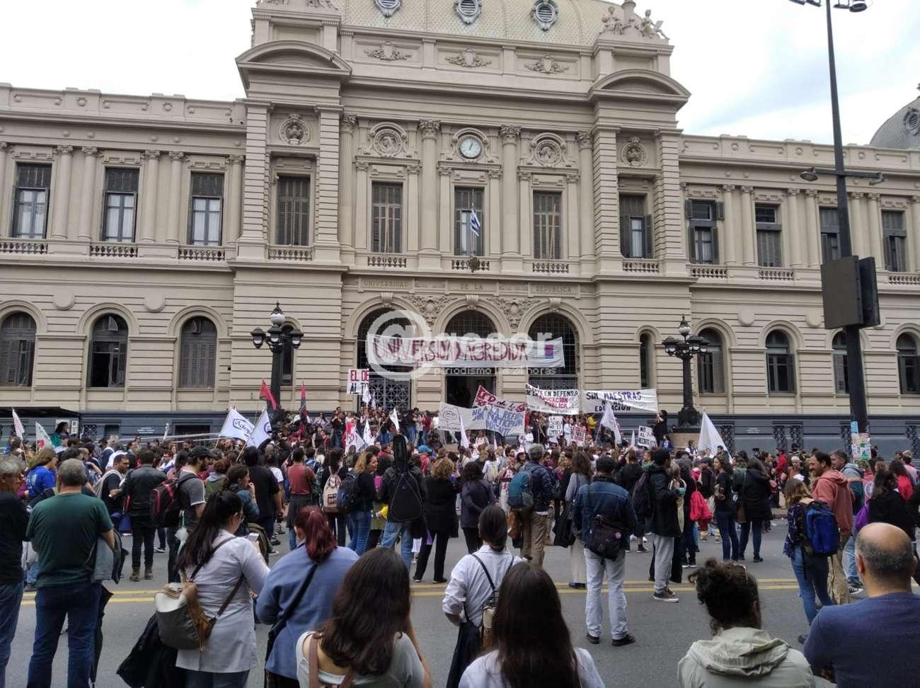 Está desarrollándose el paro con movilización que llevan adelante los diferentes sindicatos de la enseñanza nucleados en la Coordinadora de Sindidatos de la Enseñanza del Uruguay (CSEU) que tuvo su epicentro en acto llevado a cabo en el Platense Patín de Club.