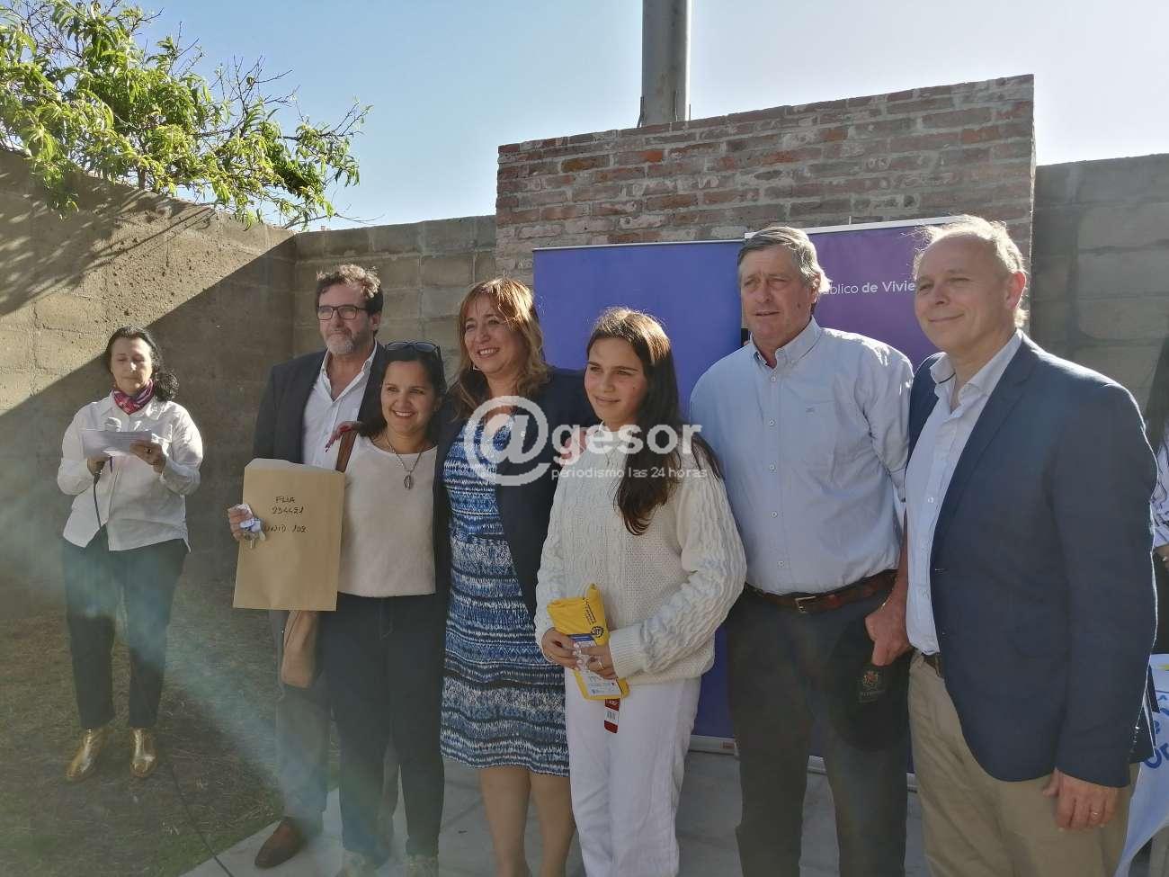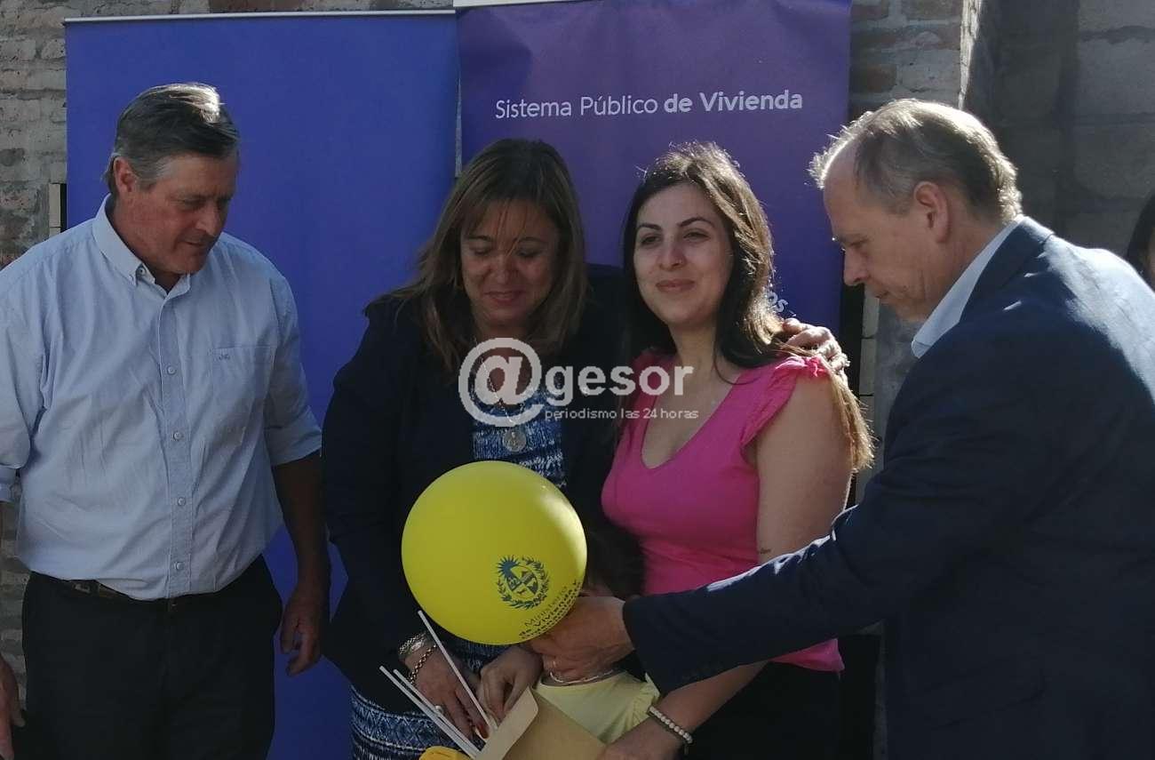 Diez familias recibieron la llave de sus casas en el complejo ubicado en calle Rivas y Galarza de Mercedes. El acto contó con la presencia de la Ministra de Vivienda, Irene Moreira, el subsecretario de la cartera Tabaré Hackembruch, el Cr. Jorge Ceretta, Director Nacional de Vivienda, y el intendente Guillermo Besozzi. Entre el público además estaban los diputados María Fajardo, y Enzo Malán, ediles y las familias de los beneficiarios.
