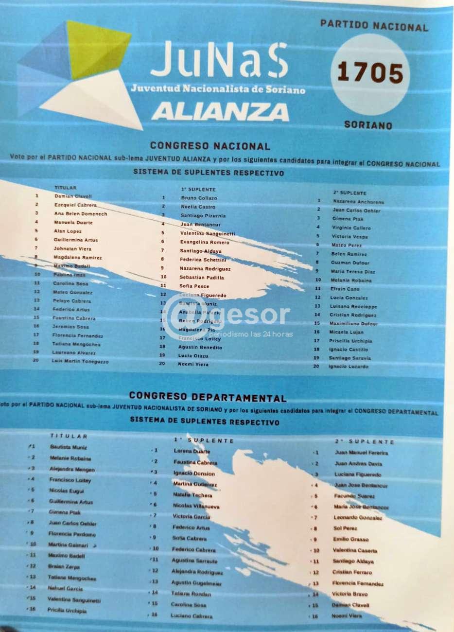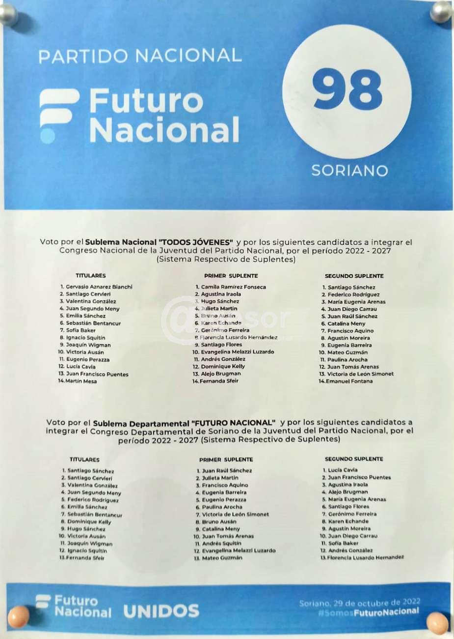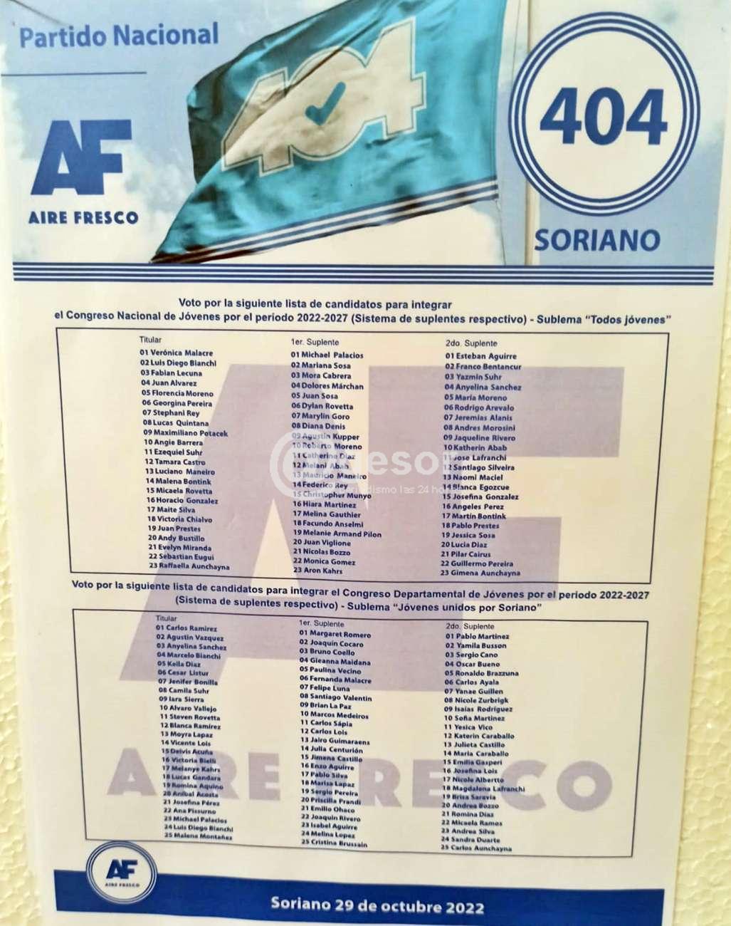 Nueve hojas de votación participan en Soriano de las Elecciones de Jóvenes del Partido Nacional este sábado 29 de octubre en el horario de 9.00 a 19.00