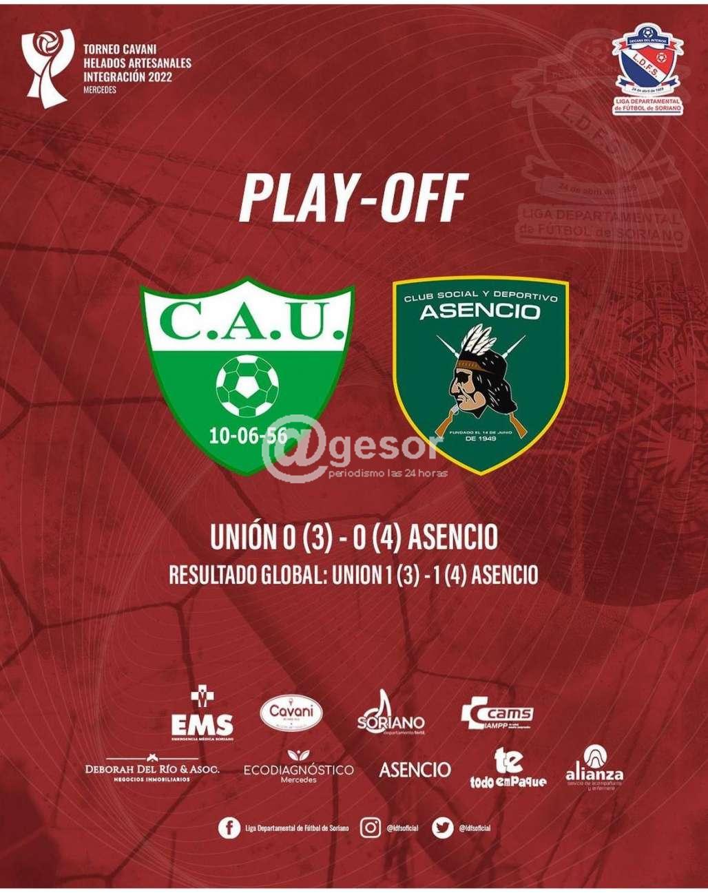 En el encuentro de ida habían igualado 1 a 1, mientras que ahora lo hicieron 0 a 0, por lo que el resultado global fue 1 a 1 y debieron definir desde el punto penal y allí triunfó Asencio 4 a 3.
