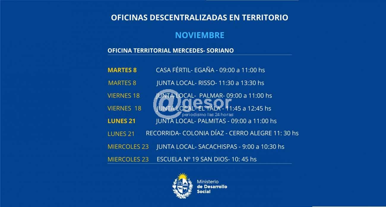 Agenda de Noviembre de las Oficinas descentralizadas del MIDES