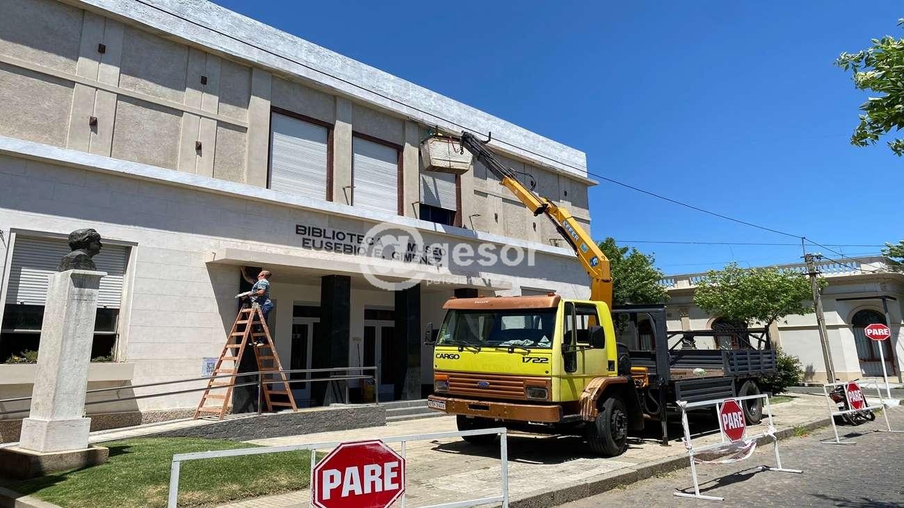 El departamento de Arquitectura de la Intendencia de Soriano realiza varios trabajos de mantenimiento en la infraestructura edilicia de la biblioteca “Eusebio Giménez”.