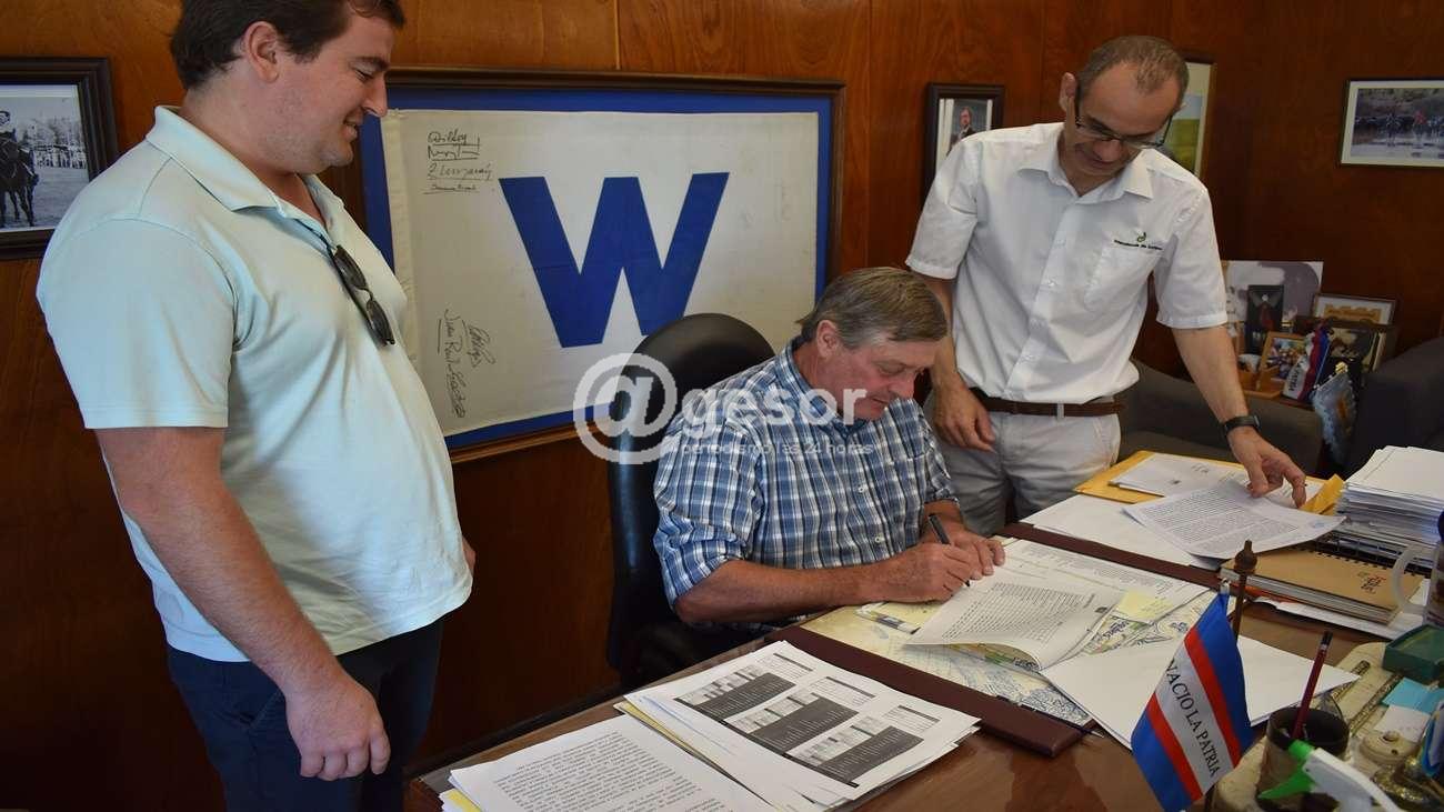 Este miércoles el Intendente de Soriano, Guillermo Besozzi, firmó el contrato de adjudicación a la empresa P & P Vial de las obras de pavimentación de los caminos de acceso a los pueblos Perseverano y Castillo.