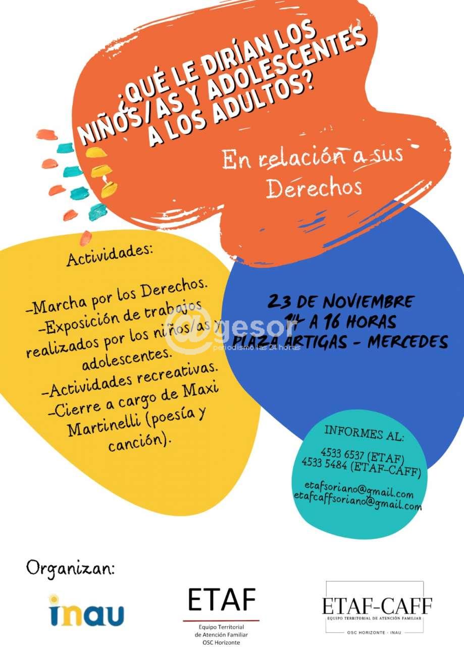 INAU, y el  del equipo ETAF-CAFF (Equipo Territorial de Atención Familiar) organizan esta actividad en plaza Artigas de Mercedes. La misma consistirá en Marcha por los derechos. Exposición de trabajos realizados por los niños/as y adolescentes. Actividades recreativas.