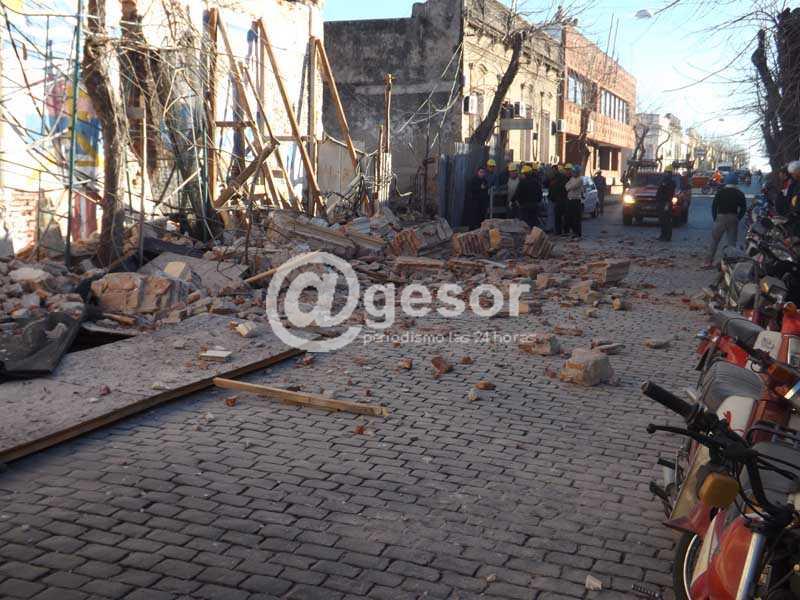 Realmente espectacular fue el derrumbe ocurrido en añejo edificio de la ciudad de Mercedes, exactamente donde hasta hace algunas décadas funcionara el ex-Hotel Universal, habiendo caído hacia la calle una de las paredes laterales de dichas instalaciones. A pesar de que a la ahora del desmoronamiento había unos 20 obreros desempeñando tareas en la estructura edilicia que se recupera para destinarla a una moderna torre de apartamentos, no se registraron lesionados, aunque el verdadero milagro se sintió en la vía pública, ya que en ese momento no transitaban ni peatones ni vehículos, lo que de haber ocurrido podría haber terminado en una verdadera tragedia. Al respecto, el profesional a cargo de la obra, Arq. Luis Gioia, expresó a @gesor que "se trató de un sector que se complementaba con una parte nueva, ya se había hecho alguna intervención anterior, era una parte muy débil, por eso prestábamos especial atención en lo que se hacía".