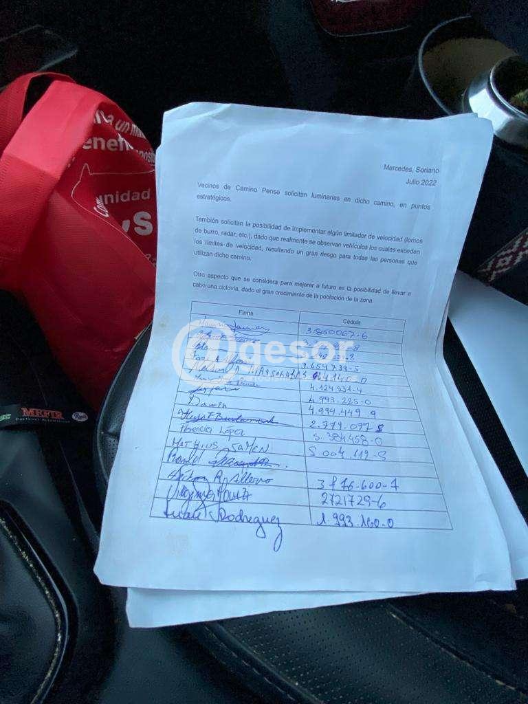 El Edil José Lavista informó: "Hace unos meses recibimos por parte de pobladores firmas pidiendo se coloquen focos para mejorar la iluminación en el camino Pense.