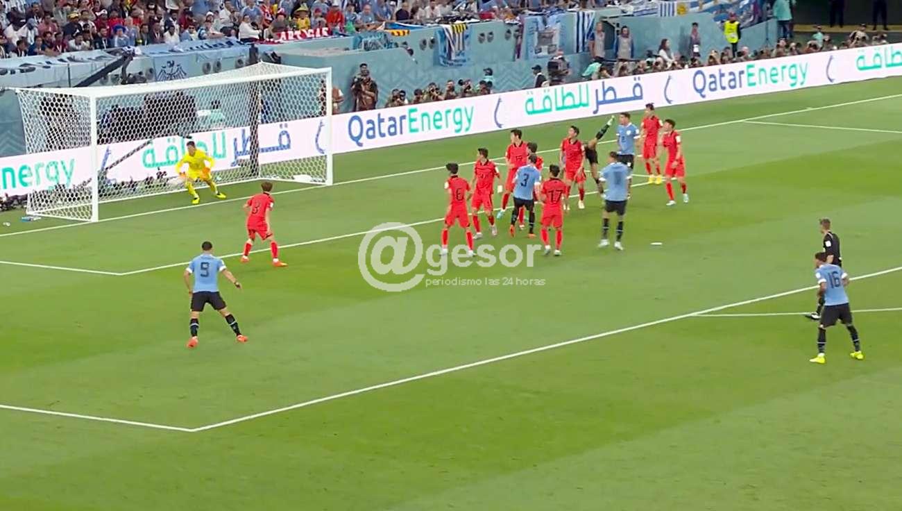 En la primera parte, Corea tuvo por momentos el control del partido, pero Uruguay en los contraataques pudo lastimarlo. Federico Valverde tuvo un remate que se fue cerca. Los asiáticos tuvieron una situación clara pero el disparo se fue por arriba del travesaño. La más clara fue para La Celeste, con el cabezazo de Diego Godín que dio en el palo.