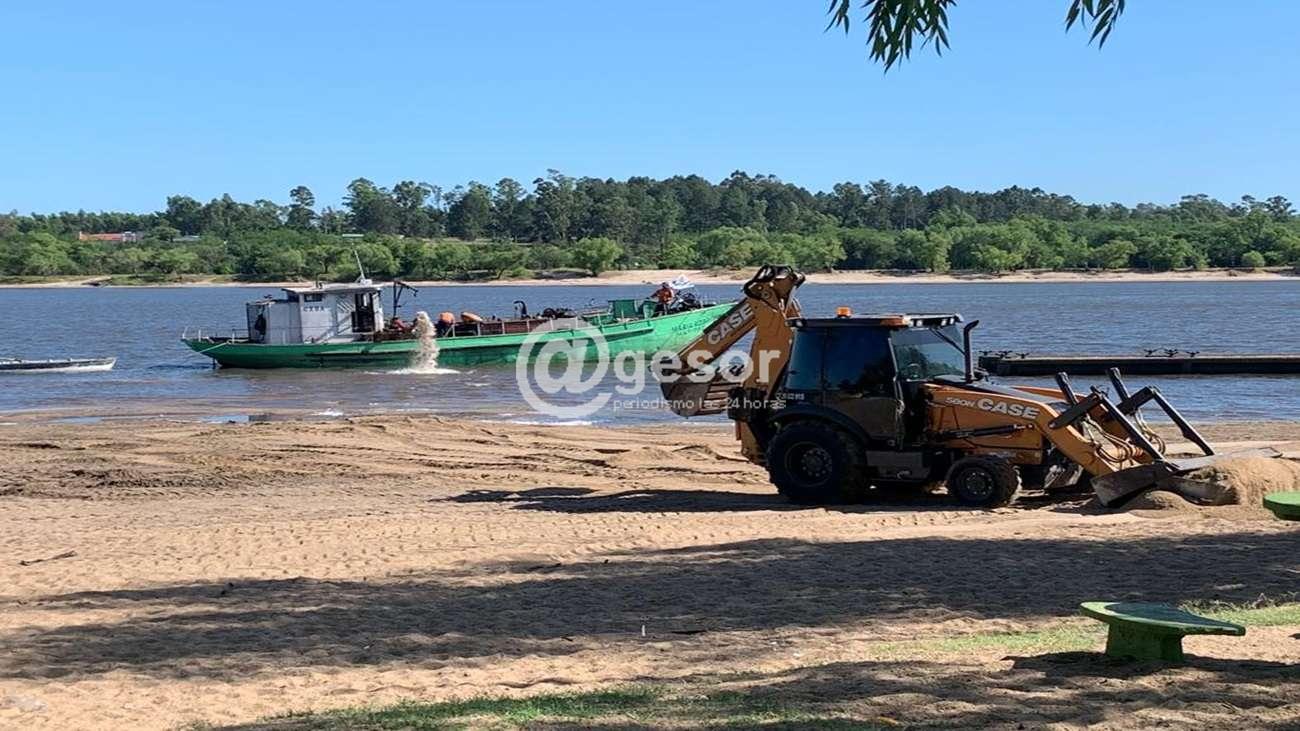 Tal es así que este lunes se realizó la recarga con arena en las playas, para lo cual se utilizó la balandra “María Rosa”, esparciendo arena desde el río, al tiempo que en la faja costera se complementó con palas cargadoras que hicieron lo propio con la arena depositada por camiones en la playa.