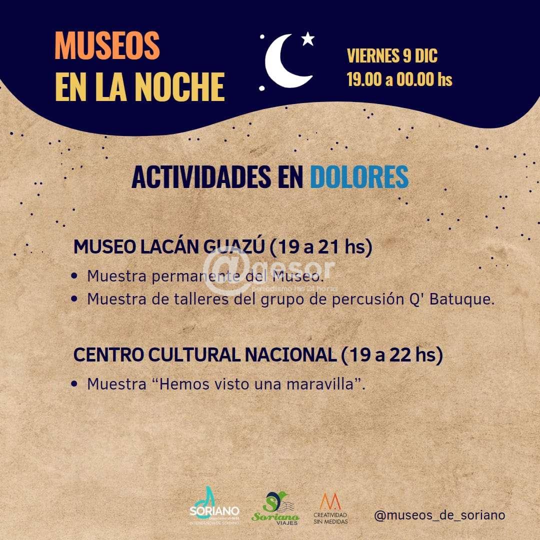 En el marco de la programación de "Museos en la Noche" este viernes 9 de 19.00 a 24.00 horas se prevén diferentes actividades en Soriano.