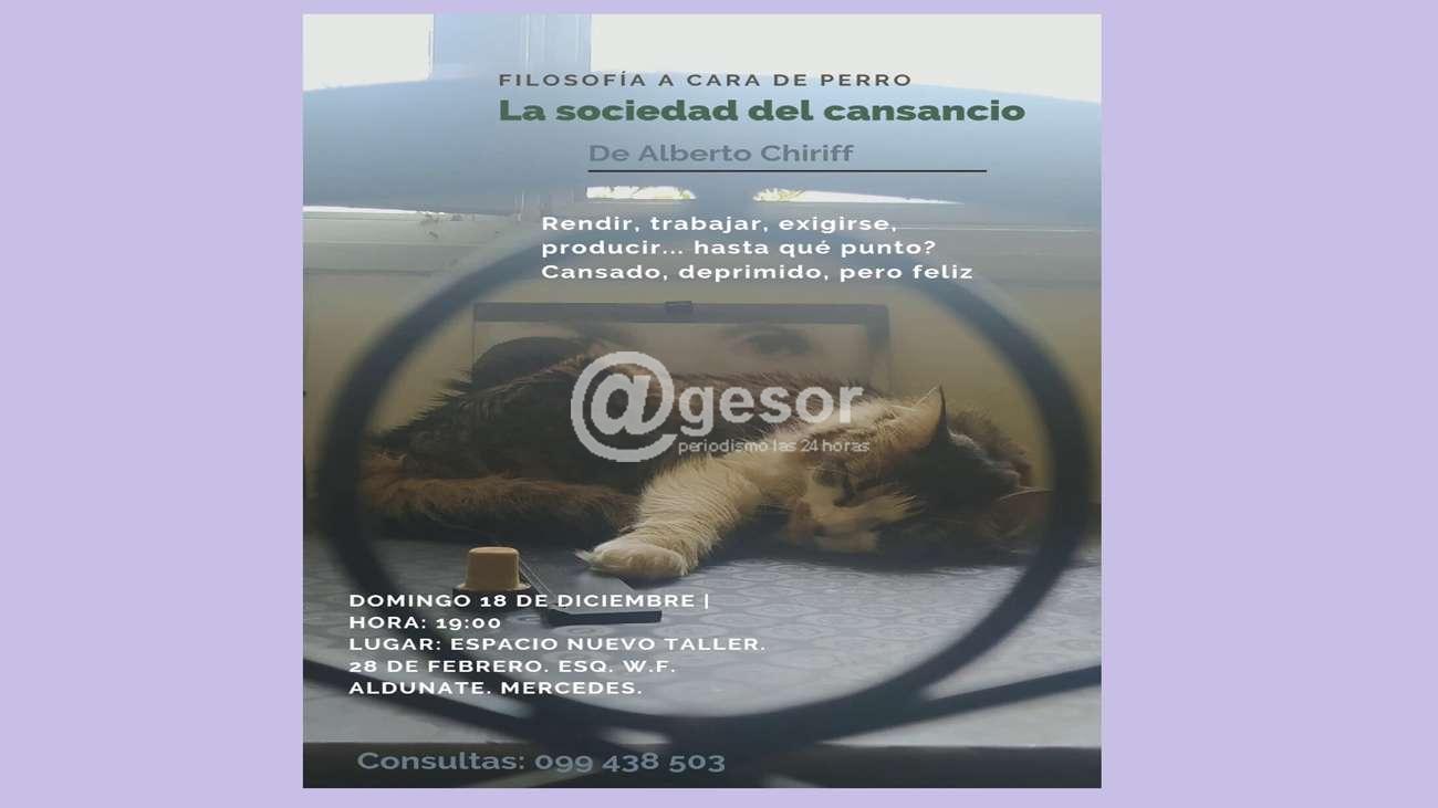 Alberto Chiriff propone reflexionar sobre "La sociedad del cansancio". Será una actividad abierta a todo público, con entrada a la gorra, que se realizará en Nuevo Taller, el dimingo 18 de diciembre, a partir de las 19 horas.