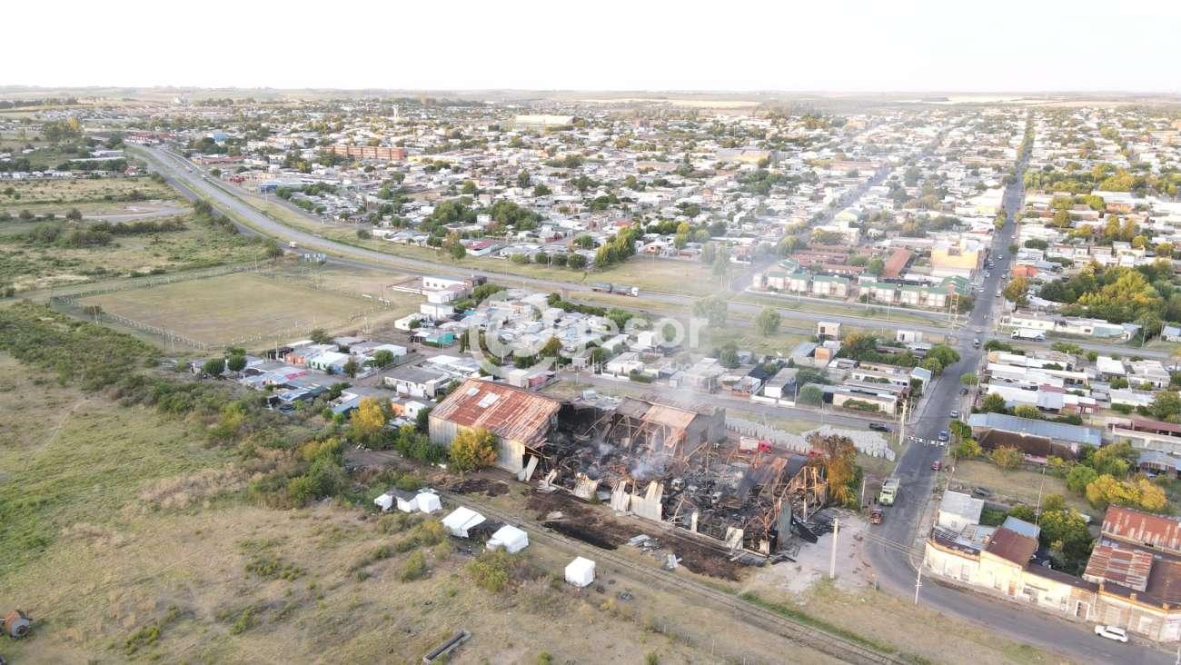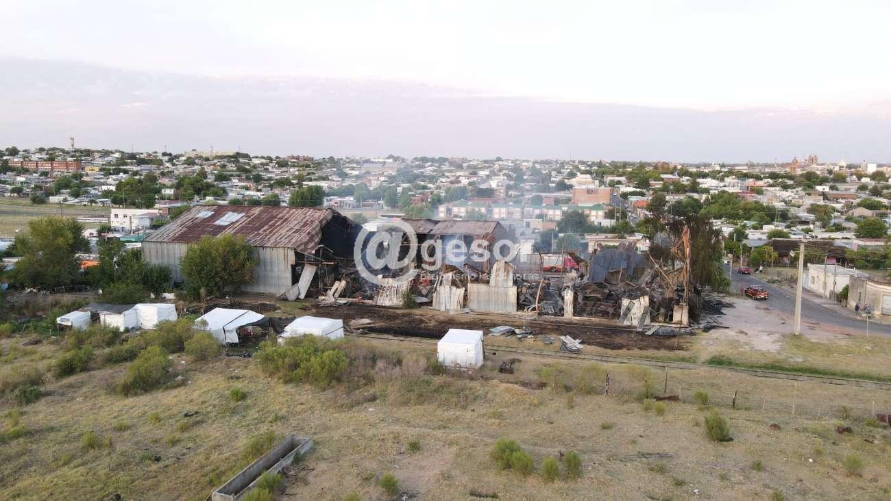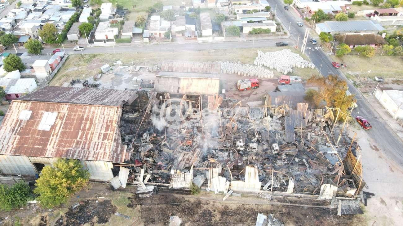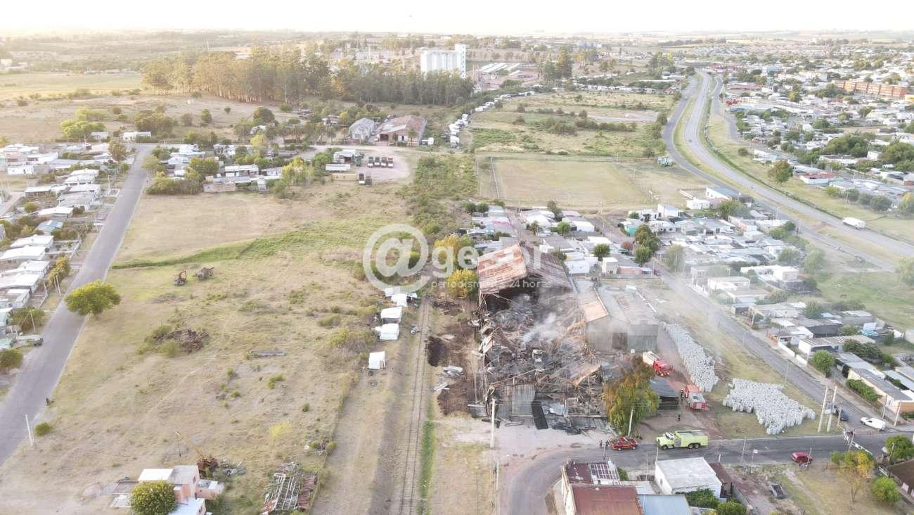 Cuando apenas amanecía, a través del dispositivo aéreo de nuestro compañero Enzo Ortega Photography, @gesor llegó hasta la zona del desastre allí en Serafín Rivas y Francia en la zona Este de Mercedes donde se ubica el centro logístico de la empresa Constructora Soriano, que resultara gravemente afectado por el fuego generalizado ocurrido en la noche de este martes por causas que se investigan aún por Bomberos.