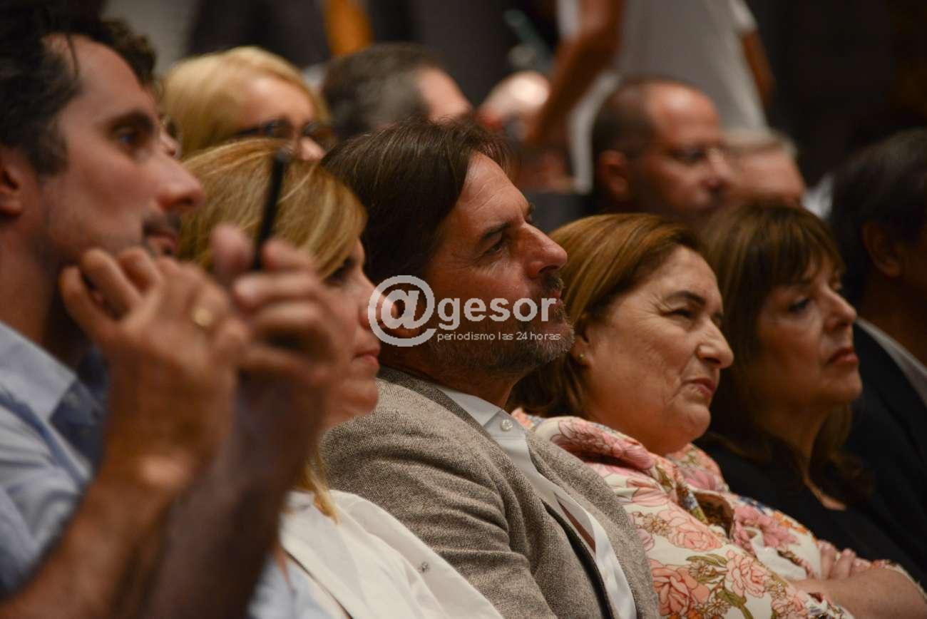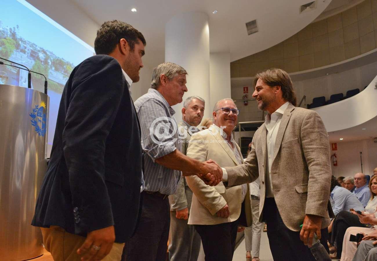 Acompañaron a Lacalle Pou la subsecretaria de Educación y Cultura, Ana Ribeiro; el intendente de Soriano, Guillermo Besozzi: el presidente y la vicepresidenta del movimiento cultural Jazz a la Calle, Horacio Acosta y Miriam Lamas.