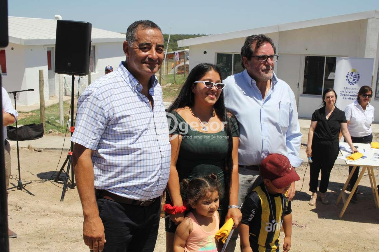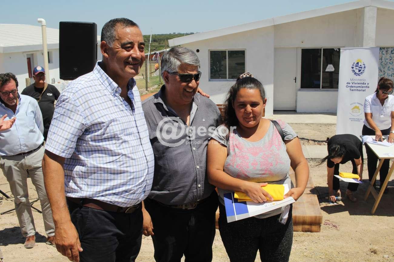 El Subsecretario del Ministerio de Vivienda y Ordenamiento Territorial, Tabaré Hackenbruch, fue uno de los integrantes de la delegación de dicha Cartera que estuvo presente en la entrega de las 19 llaves de viviendas a familias beneficiarias en el plan de realojos que conjuntamente con la Intendencia de Soriano y los vecinos, construyeron en calle Mayo extremo Sur de Mercedes en el barrio Jardines del Hipódromo.