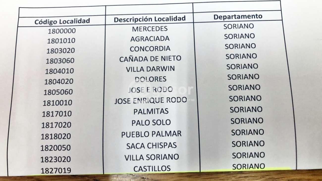 En este cambio de redacción, se atiende el reclamo de micro y pequeños comerciantes realizados por Centros Comerciantes a través de los diputados de Soriano, la Diputada María Fajardo confirmó ello a @gesor y las localidades del departamento que están incluidas en este decreto ley, que otorga los beneficios fiscales para el período de 6 meses a contar desde el 1 de noviembre de 2022: Mercedes, Agraciada, Concordia, Cañada Nieto, Villa Darwin (también está con código por Sacachispas), Dolores, José Enrique Rodó (que tiene dos códigos), Palmitas, Palo Solo, Palmar, Sacachispas, Villa Soriano, Castillos.