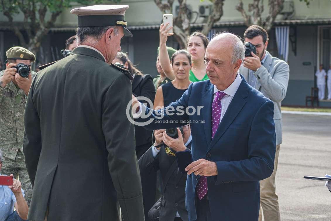 Antes de finalizar, quiero referirme al señor General de Ejército don Gerardo Fregossi, que hoy deja la vida activa después de más de 44 años de servicio, agradeciéndole en nombre del Ejército Nacional por su esforzada y permanente dedicación a usted y su familia, nuestros mejores deseos en esta nueva etapa que comienza. Me resta agradecer a las autoridades nacionales, departamentales, invitados especiales, nuestra familia, nuestros amigos que hoy se hicieron presentes en este Comando General y señalar a los efectivos del Ejército Nacional, que este Comandante, cuya carrera transcurrió principalmente por diferentes unidades militares en contacto permanente con efectivos de todas las jerarquías, hará su mayor esfuerzo para que nuestra institución se mantenga entrenada, equipada, pero fundamentalmente con la necesaria cohesión y un alto espíritu militar. Muchas gracias.