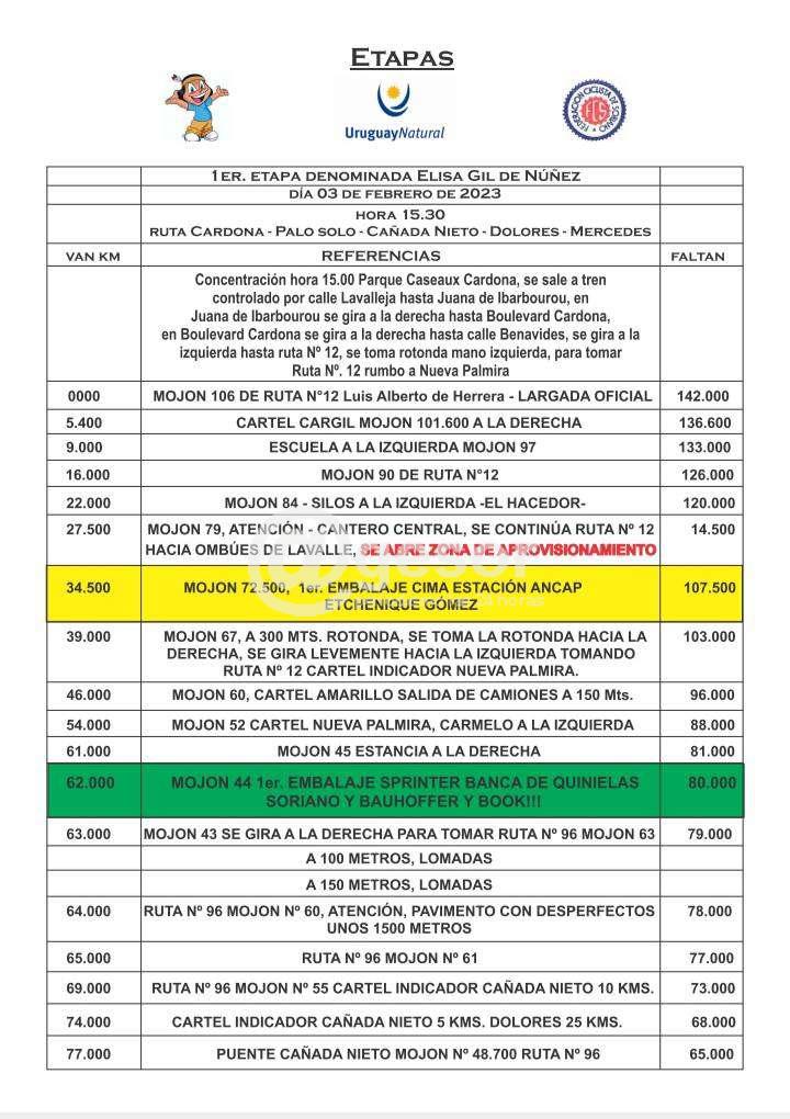 La 1ª etapa se larga a las 15.30 desde Cardona y unirá Palo Solo, Cañato, Dolores y Mercedes, y lleva el nombre de Elisa Gil de Núñez.