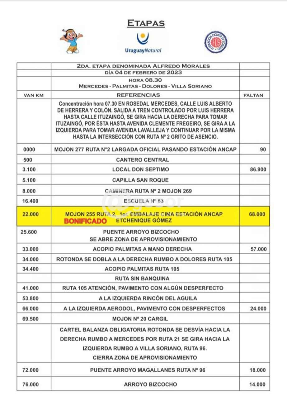 La segunda parte de la etapa que se denomina Club Ciclista Cardona Wanderers será la contra reloj individual, con punto de concrentación en Villa Soriano, más precisamente en calles Cabildo y España, con hora de largada a las 15.00 horas.