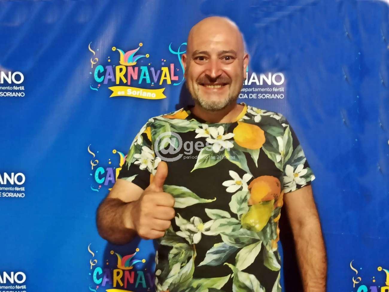 "Estuve anteriormente como Jurado en el Concurso de Montevideo en el 2020, en Voces y arreglos, en el 2021 no hubo Carnaval por la pandemia, en el 2022 estuve en la prueba de admisión y después en el concurso, ahí conocí a Alfredito Leirós que hicimos terribles migas con él, y este año no estuve en el Jurado allá y a él lo llmaron para estar acá y me dice "precisan un jurado y quiero mandar a alguien de tu confianza, me gustaría que fueras vos para ahí". Le dije que lo haría encantado de la vida, amo el Carnaval. Empezamos a hablar con toda la organización divina de acá, se dio por suerte el poder estar, es una alegria y un honor estar con estos compañeros del Jurado, encontrarnos con este enorme Carnaval. Me quedo resorprendido, el escenario es preciocísimo, la envidia de todo tablado, la gente es recálida, acompañó perfectamente el tiempo hasta ahora, estoy muy contento de haber venido gracias a la recomendación de Alfredito Leirós".