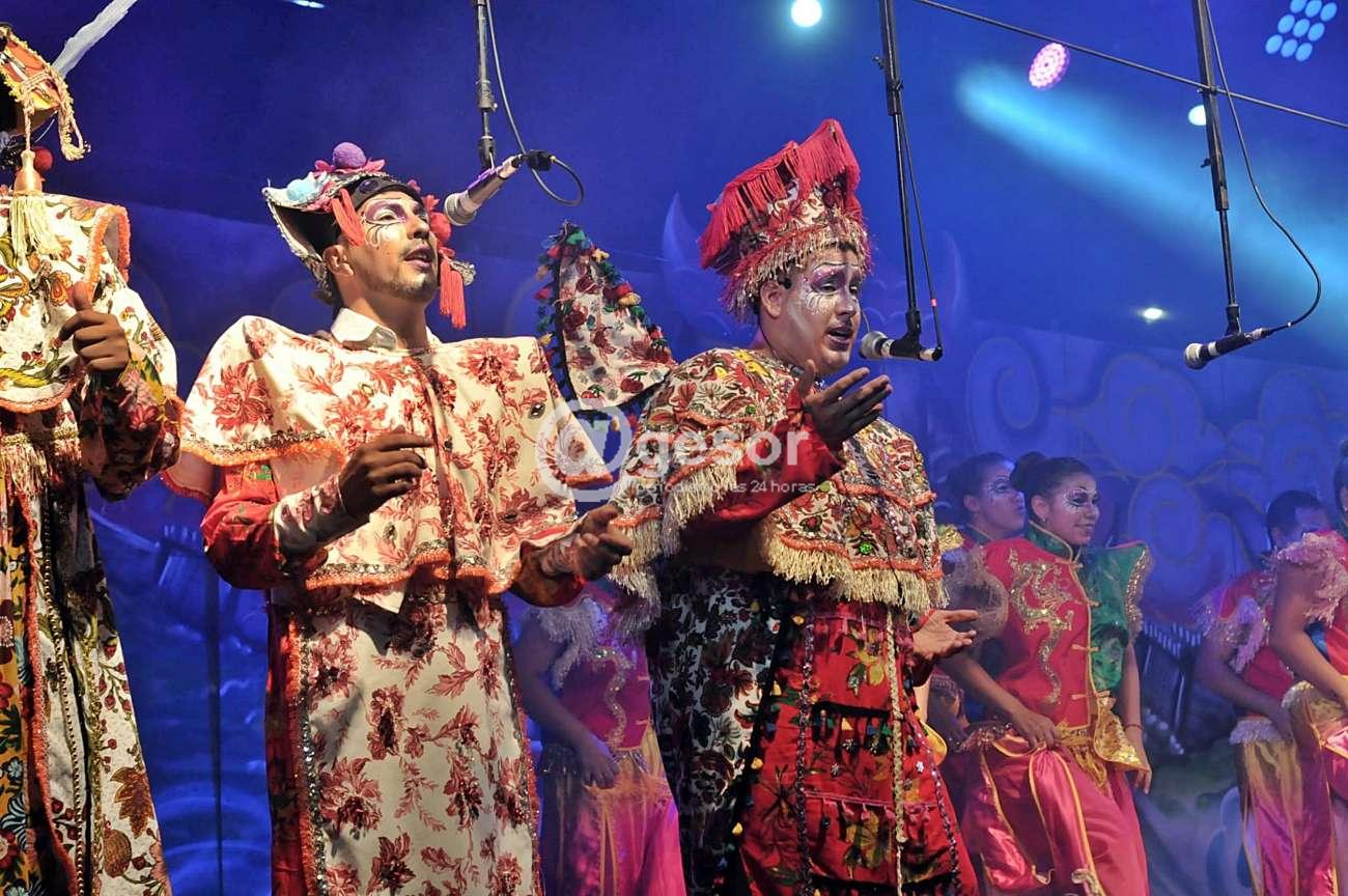 El hilo conductor está a cargo de otro carnavalero con experiencia como lo es Martín Díaz convertido en el sabio Chantún, y Esteban Alvarez como el Emperador, con intervenciones de solistas como Gabriela Ibarra y de Delfina López.