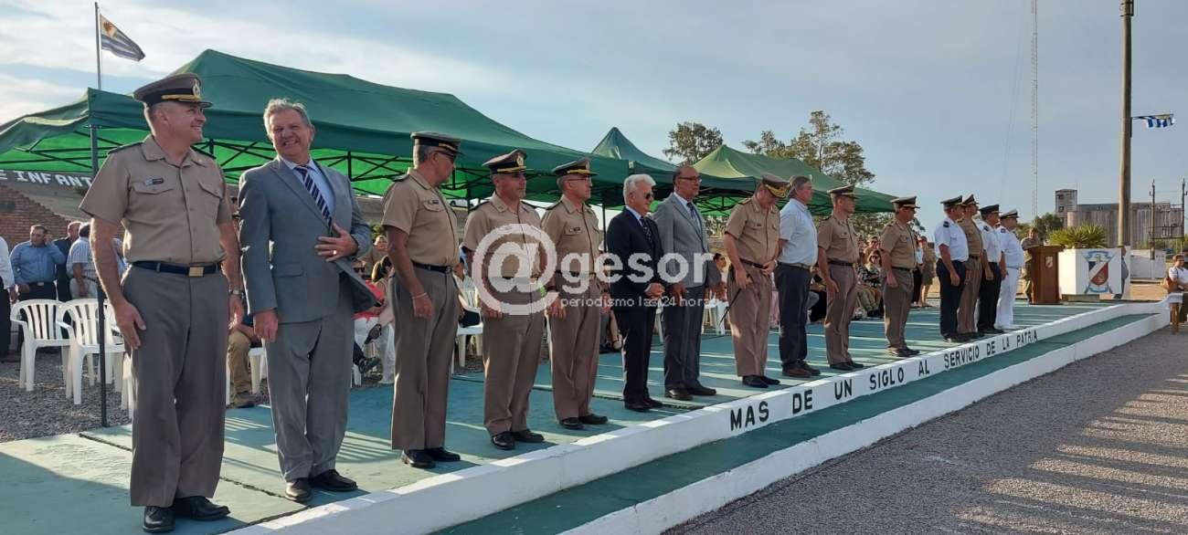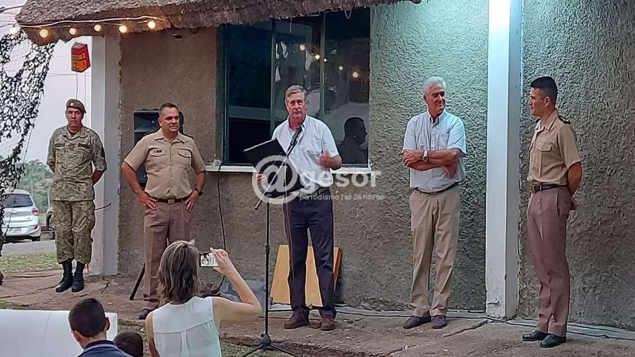 Durante la ceremonia el intendente Besozzi dio la bienvenida al nuevo comandante del batallón al tiempo que agradeció al jefe saliente, el Tte. Cnel. Álvaro García, a quien le entregó junto al ex intendente Agustín Bascou, un presente en reconocimiento por el apoyo brindado.